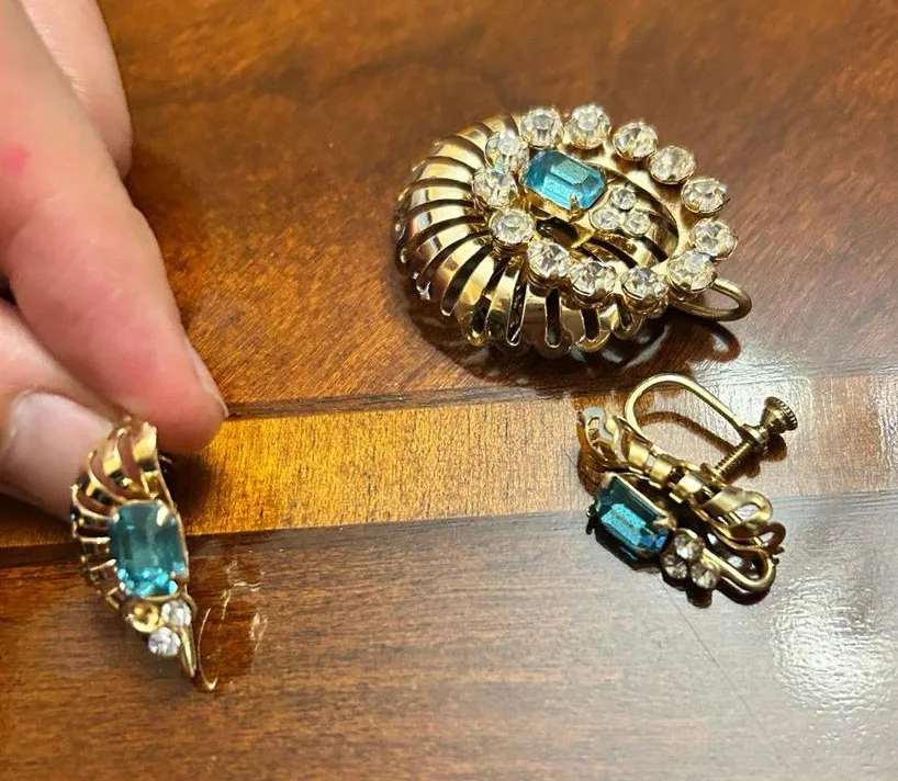 Vintage fashion jewlery pin and earring set no hole clip Blue - $15 - From Dorota