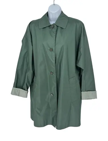 Vintage Fleet Street Green White Plaid Trench Coat Built-In Shoulder Pads Size 8 - Approximate meas... Show more