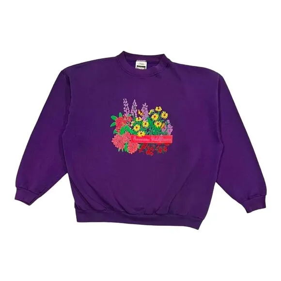 π² Reasonable offers accepted π₯ 9.5/10 condition π (L or XL) Measurements shown This item has been washed & is ready to wear :) - Retail: $75 - No Flaws that stood out βΌοΈ This crewneck features an intricate floral garden design with various types of flowers, showcasing a beautiful array of colors and patterns that stand out against the purple backdrop. The detailed floral prints, including blooms like roses, daisies, and tulips, give the sweatshirt a whimsical and nature-inspired feel, making it perfect for lovers of vintage and floral-themed fashion. The unique floral design offers a pop of personality and nostalgia, making it a great choice for those who appreciate the vibrant, artistic styles of the 80s. πΈβ¨ Tags: