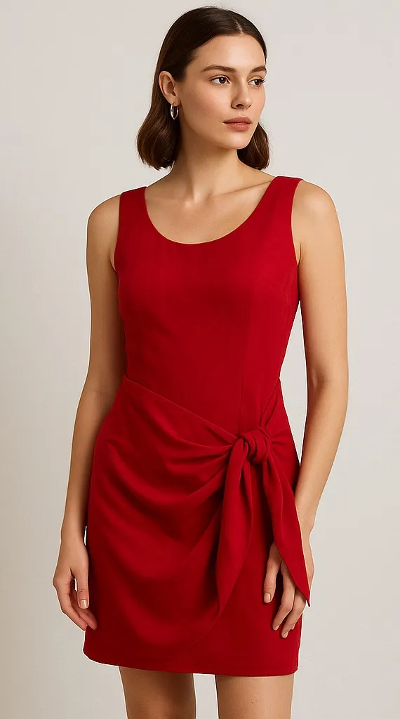 A true vintage gem. This 100% silk Forenza dress in bold red features a draped tie-front detail that flatters the waist beautifully. Effortless elegance for the holidays or a romantic date night. Pair with gold heels and a clutch for a timeless, Old-Hollywood vibe. • Size 8 • Fully silk construction • Hidden back zipper • Excellent pre-owned condition Measurements (approx.): 17” pit-to-pit, 33” length #vintage #holidayparty #redress #silkstyle #cocktaildress