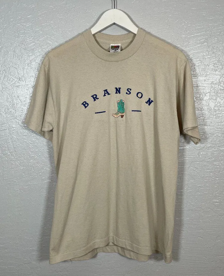 VINTAGE Fruit of the Loom Unisex L Beige Branson Missouri T-Shirt Embroidered graphic, Single St... Show more