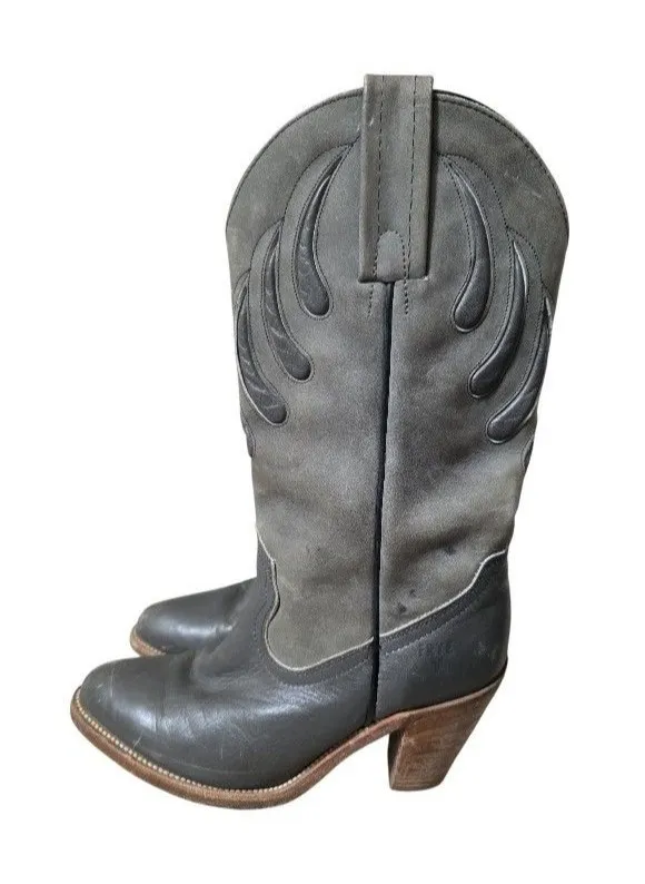 The Vintage Frye Flame Inlay Boho Leather Western Cowboy Campus Daisy Boots in size 7B are a stylish... Show more