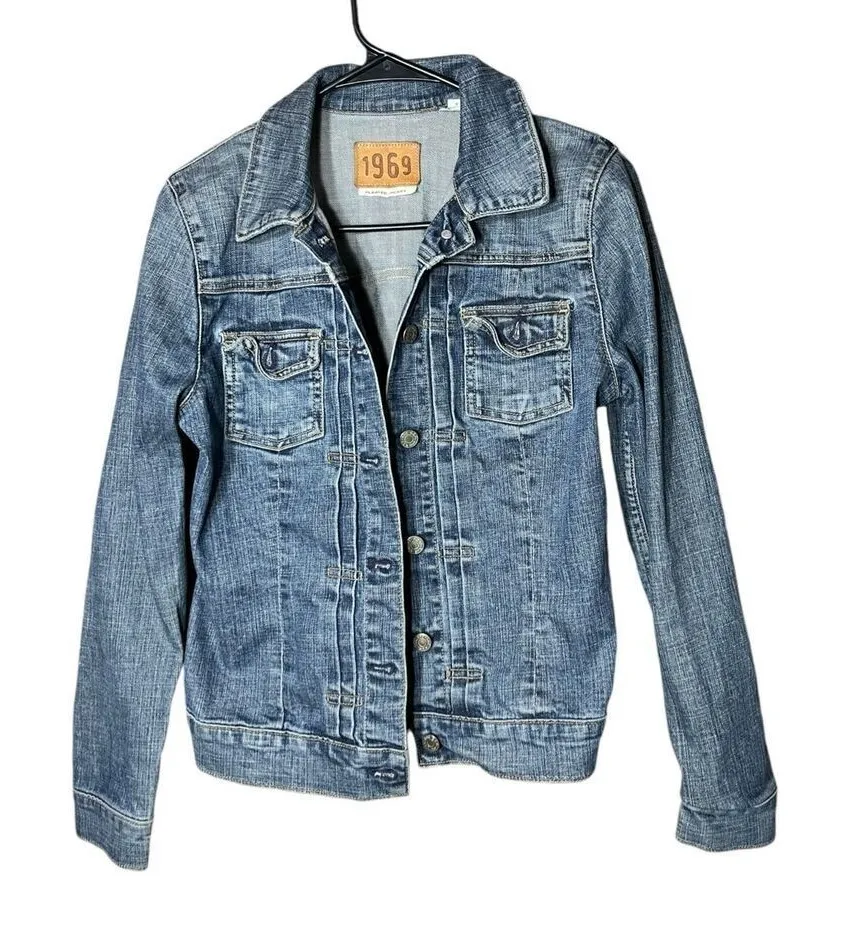 Vintage GAP 1969 Jean Jacket Blue Denim Heritage Trucker Pockets Y2K Size S. Good condition some was... Show more
