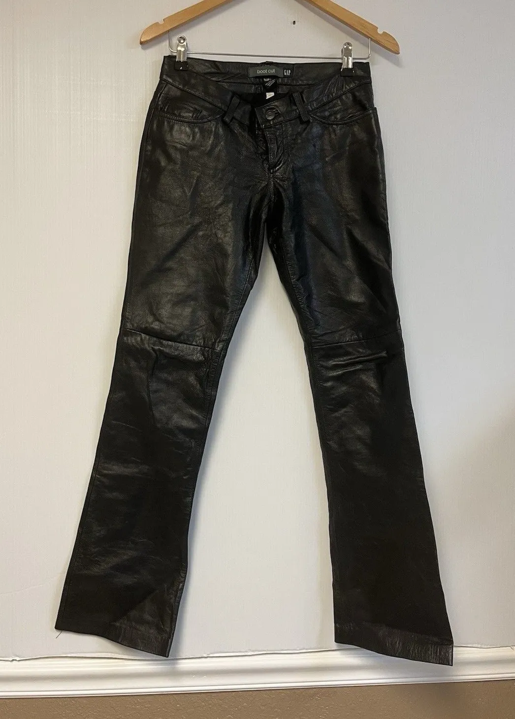 Rare Vintage GAP Genuine Leather Bootcut Pants in womens size 2, classic black, and fully lined for... Show more