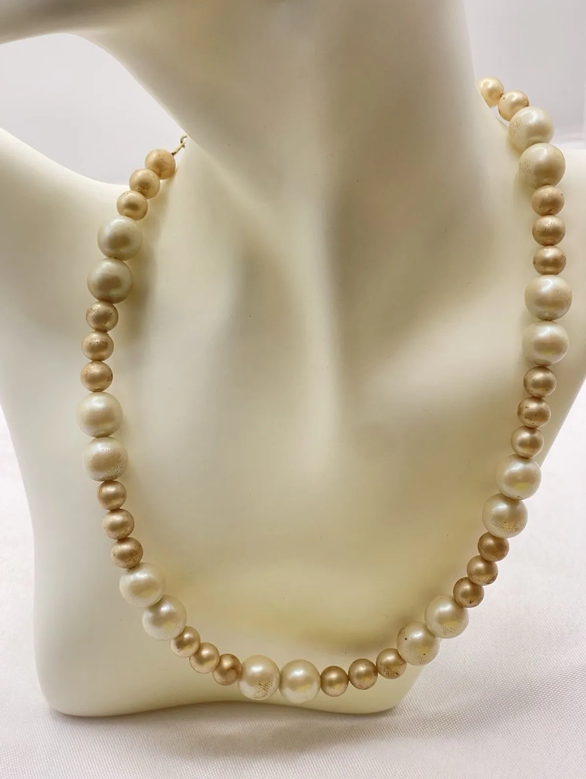 This vintage 16" pearl necklace features stunning cream pearls in a choker style, making it a gorgeous and perfect accessory for any outfit. The genuine pearls add a touch of elegance and sophistication to any ensemble, making it a timeless and classic piece of jewelry for any collection.