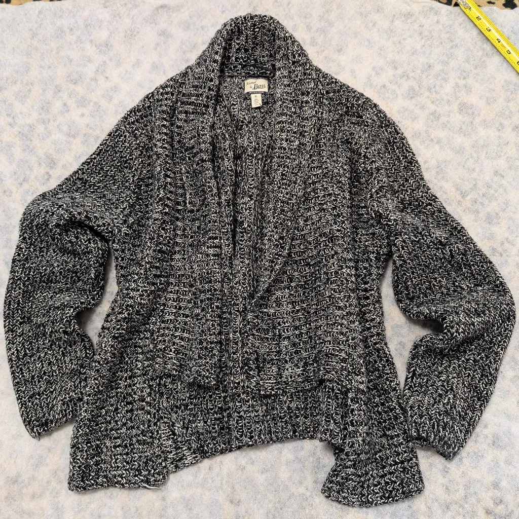 Vintage GH Bass Women’s Shawl Collar Cardigan | Cozy Cabin Vibes This one’s a total classic — vintage GH Bass cardigan in a black-and-white marled knit with a shawl collar that makes you feel like you should be sipping coffee on a porch in Maine. It’s thick, cozy, and has that speckled texture that just looks warm. Tag says XL and it fits relaxed — perfect for layering over flannels, thermals, or even a dress with boots. The label says “Knitted by Bass” and I just love that. It’s got heritage vibes without trying too hard. Great condition, no holes or weird smells. Just a solid vintage sweater that deserves a second life. 📏 Size: Women’s XL 🏷️ Brand: GH Bass & Co. 🎯 Condition: Excellent vintage I’m just a mom who loves finding cozy vintage pieces and sending them off to good homes. Happy to bundle! GH Bass & Co. Knitted by Bass women’s vintage cardigan shawl collar sweater marled knit cardigan black and white speckled heritage knitwear cabin core cozy winter layers relaxed fit cardigan classic American style flannel layering piece mom seller vintage great gift for her Wilton Maine brand Bass vintage sweater soft cotton blend thrifted with love snowy cabin vibes vintage knit cardigan