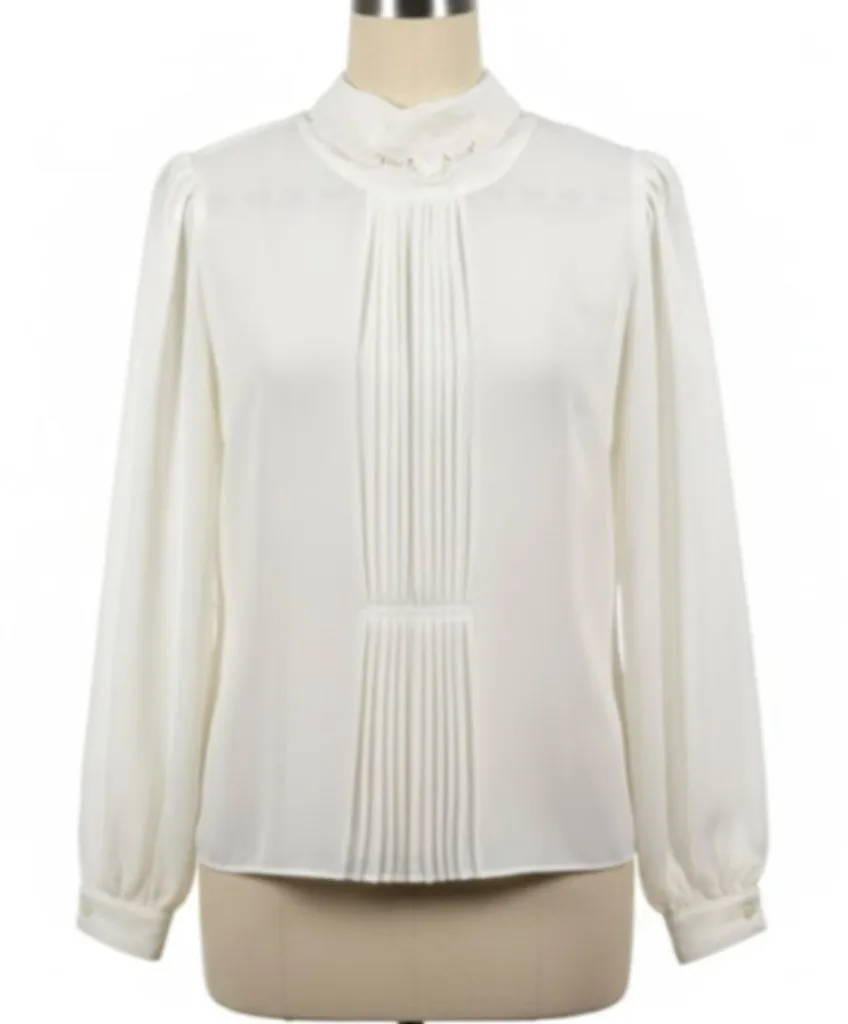 Vintage Glances Blouse M Cream Lace High Neck Pleated Puffy Sleeve Secretary Type: Blouse Departmen... Show more