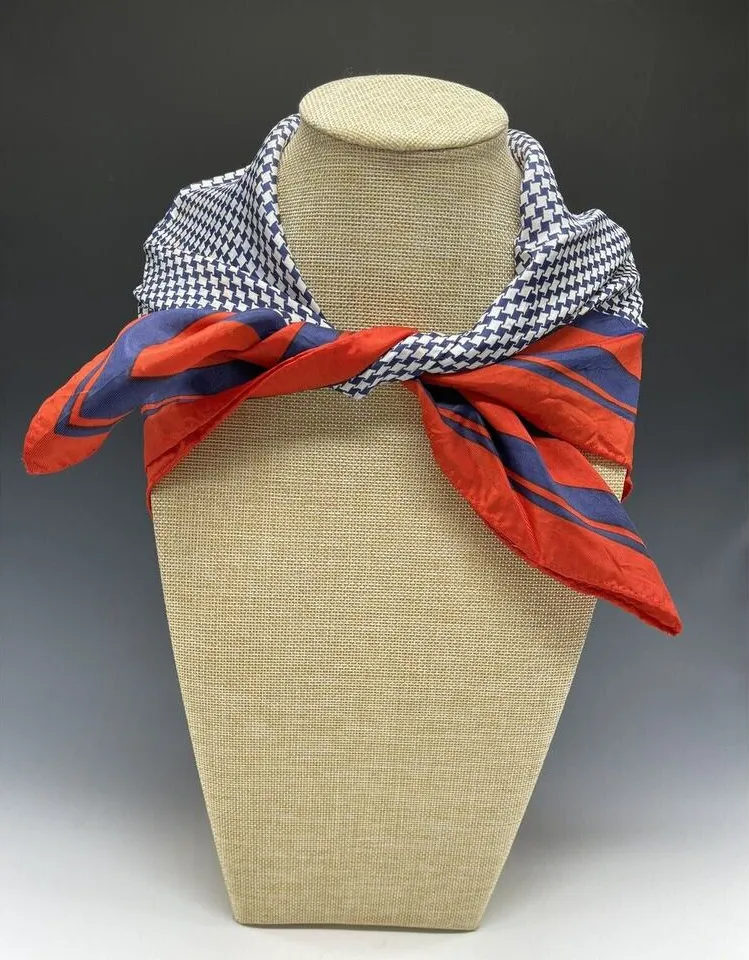 Vintage Glentex Scarf Handkerchief Hankie Houndstooth Blue Red 15542‎ Japan - $13 - From C