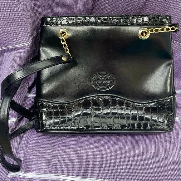 Vintage Gold Coast Collection Handbag,Black Faux Leather Croc Embossed and Chain Black - $19 - From Gen