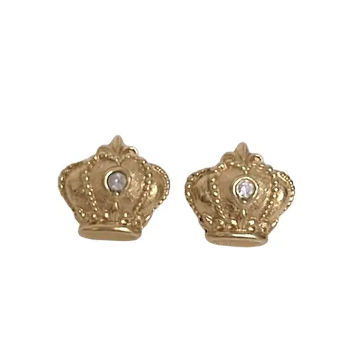 Vintage Gold Plated Earrings Rhinestone Queen Princess Crown Jewelry Crystal - $13 - From Emerald
