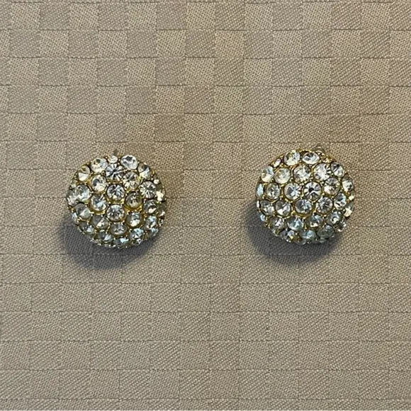 Vintage gold tone 1” dome pavè stud rhinestone faux diamond earrings. - $24 - From Melinda