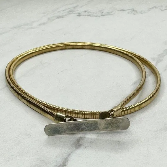 Vintage Gold Tone Bar Buckle Skinny Coil Stretch Cinch Belt Size XS Small S Condition: Pre-Owned... Show more