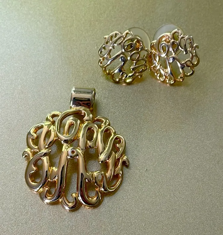 Vintage Gold Tone Charm Pendant and Matching Earrings, Pierced - $25 - From Christina