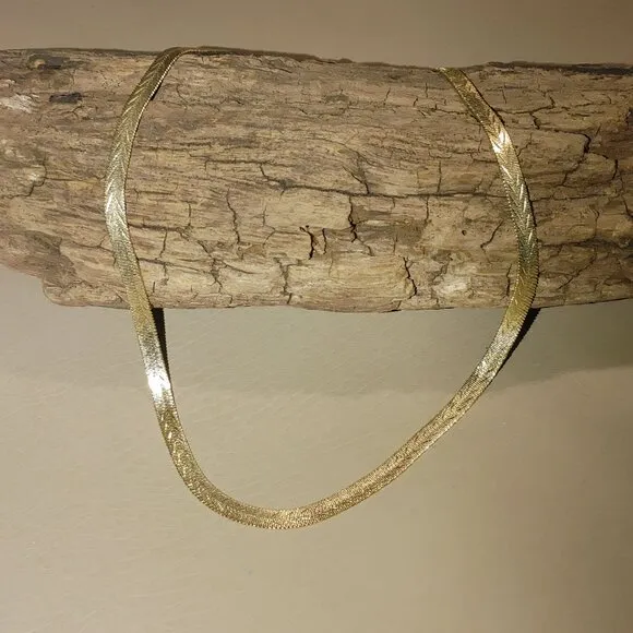 Exuding timeless charm, this vintage gold-tone herringbone necklace showcases intricate craftsmanshi... Show more