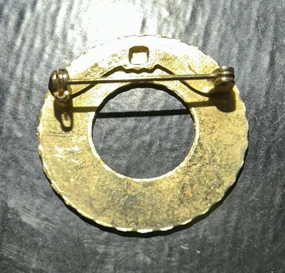 Vintage Gold Tone Round Brooch Scarf Clip - textured circular Pin Mid Century - $8 - From Hannah