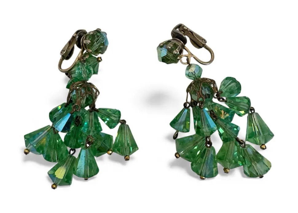 Vintage Green Aurora Borealis Crystal Chandelier Clip On Earrings Gold Tone - $30 - From Lisa