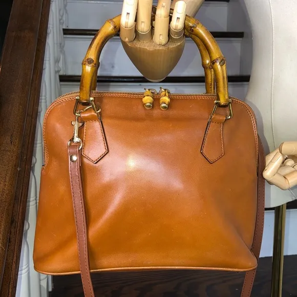 VINTAGE GUCCI Leather Top Handle Bamboo Hand Bag with Original Crossbody Strap VINTAGE GUCCI Bamboo... Show more
