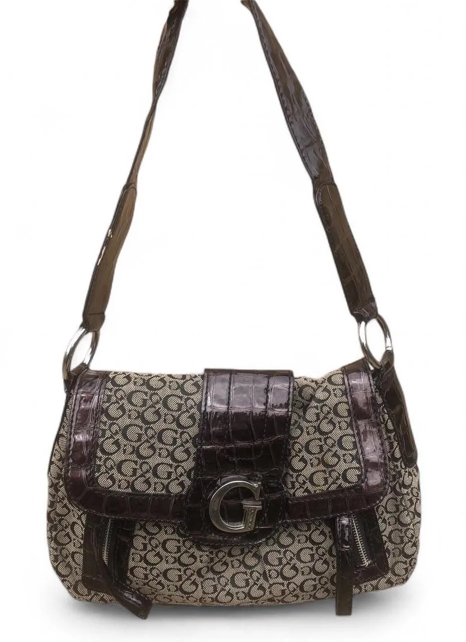 Vintage Guess Y2K Faux Leather Shoulder Hand Bag Purse Gothic Mcbling Emo Whimsy Grunge 2000s Brown - $83 - From Victoria