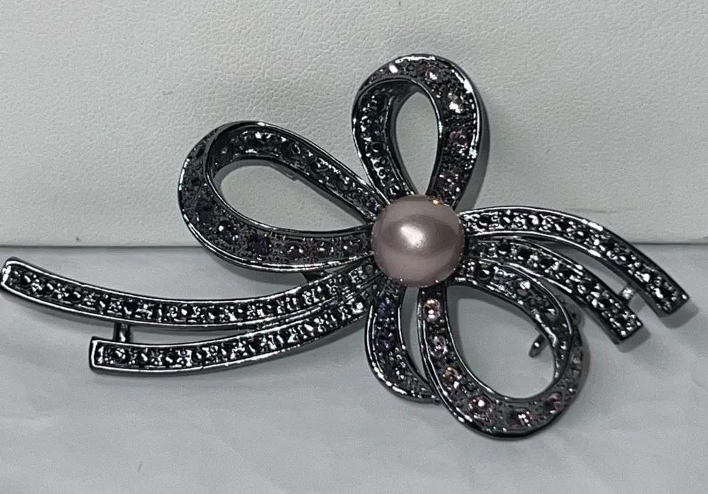 Vintage Gunmetal‎ and Rhinestone Faux Pearl Brooch Silver - $20 - From A Little