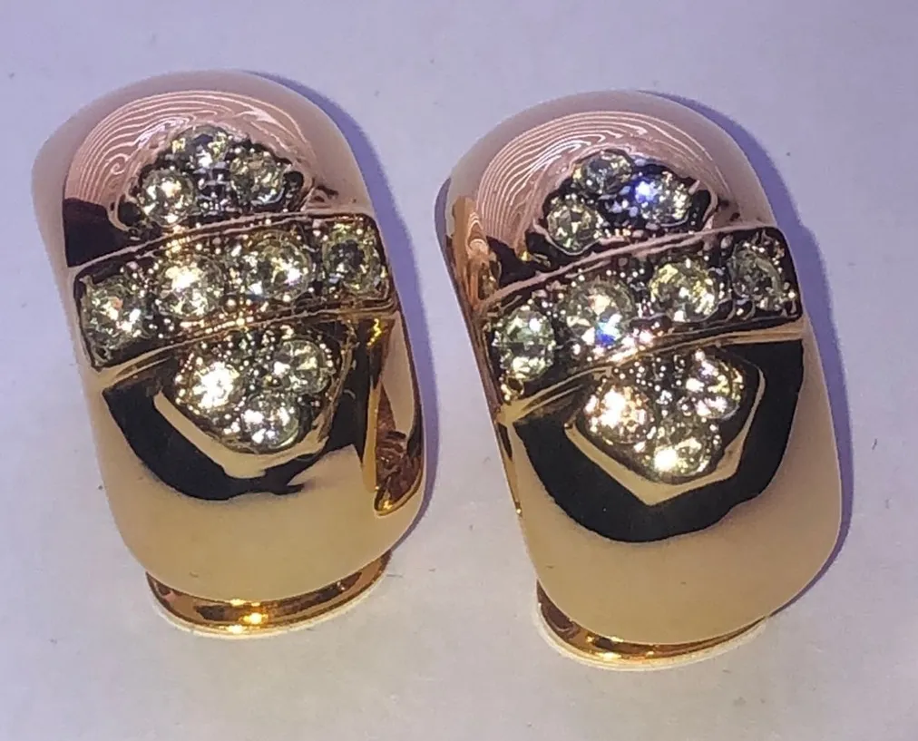 Vintage Half Hoop Gold Tone Bling Rhinestone Retro Clip On Earrings - $22 - From Vault