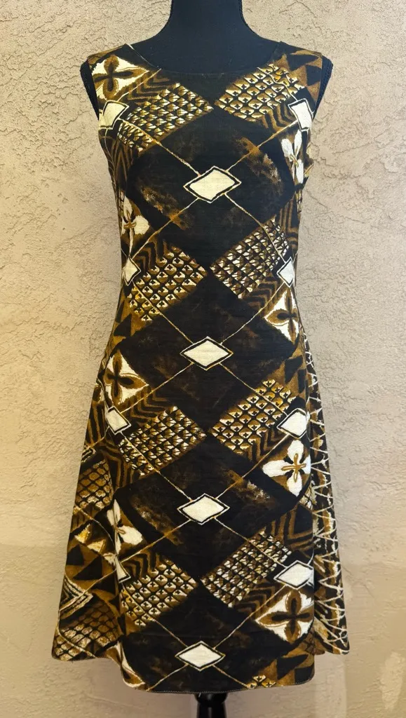 , no size tag but measures like a small. Excellent vintage condition, with little to no wear, no stains, and no damage. Super cute, functional button details on the back along with a perfect working zipper. Gorgeous pleats on the back bottom. This stunner is perfect for a summer vacation, tiki bar trip, or really anytime wear! This dress was made exquisitely, and is stitched expertly . Measurements are approximate & taken laying flat: Pit to pit: 17.5” Waist: 15” Length: 37”-39”
