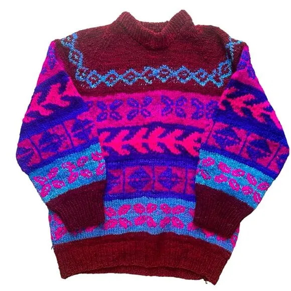 One of a kind, handmade sweater 100% wool Made in Bolivia Normal signs of vintage wear See photos for approximate measurements All items come from a pet friendly and smoke free home.