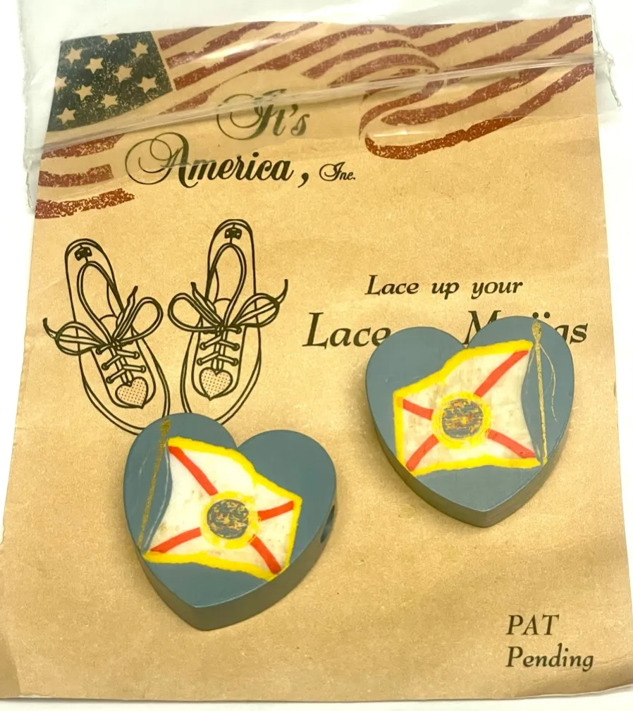 Vintage Handmade Wooden State of Florida Flag Lace-A-Majigs for Shoe Laces - New in Package Cute addition to your shoe game! Accessorize your laces with Florida history! Handmade and unique!!