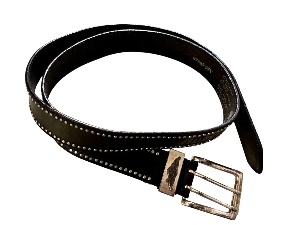 This Vintage Harley Davidson HD Embossed Black Leather Studded Belt is a stylish and edgy accessory... Show more