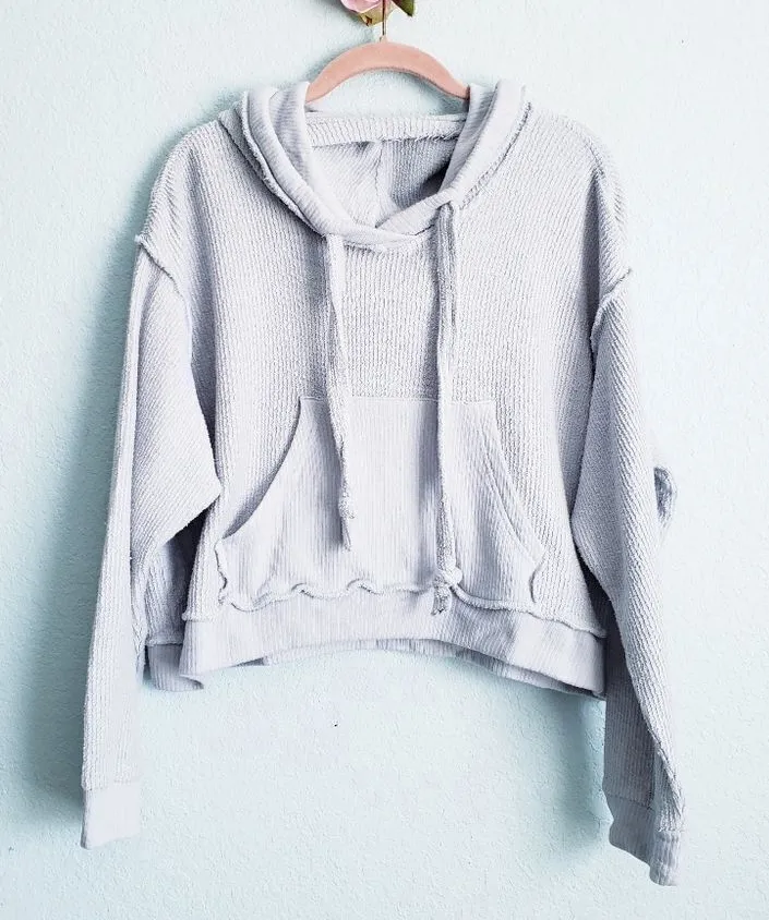 Vintage Havana Blue Ribbed Cropped Hoodie with Open Back - $30 - From Chelsea