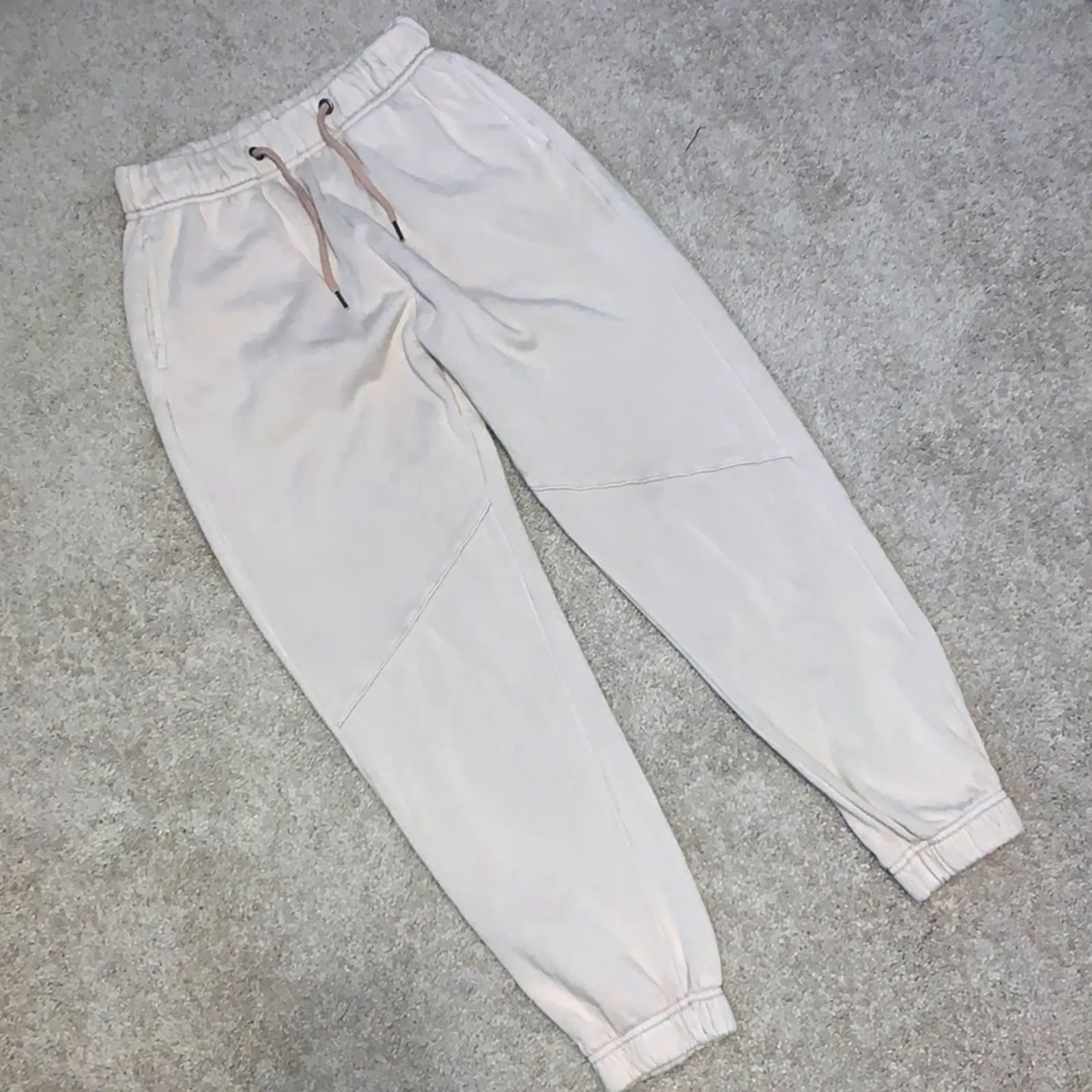 Vintage Havana - Blush / light pink, high waist, sweatpants joggers. Elastic drawstring waist and elastic ankle hems. Real pockets on front and rear. Super soft and comfy. Size small 60% Cotton; 40% Polyester Waist - 12" Inseam - 24" Rise - 12" ***Approximate measurements taken laying flat