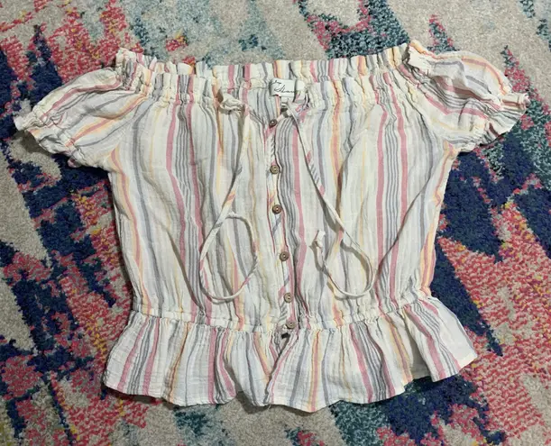 Size large. Vintage Havana off the shoulder stripped button up top with elastic bottom! EUC! Smoke... Show more