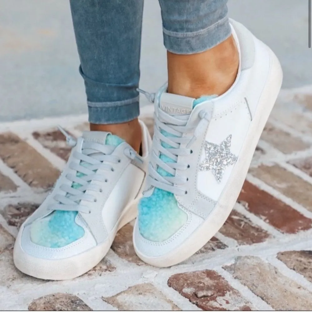 Vintage Havana Zoey Faux Shearling Trim Sneaker Size 11 Great condition. No rips, stains or flaws. Gently worn. A sparkly side star, dyed faux shearling tongue, and leather panels style a classic sneaker with a shock foam padded insole for all-day comfort. Water-resistant Round toe Paneled upper Glitter side star Faux shearling tongue Lace-up ties Padded collar Shock foam insole Grip outsole Leather/textile/faux shearling upper, synthetic lining, synthetic/textile sole Imported