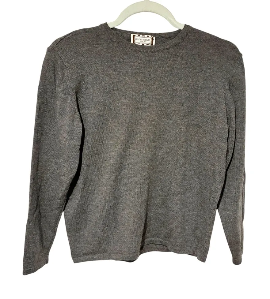 Vintage Henri Bendel New York Merino Wool Grey Crewneck Sweater Size Medium Gray - $30 - From Nacole