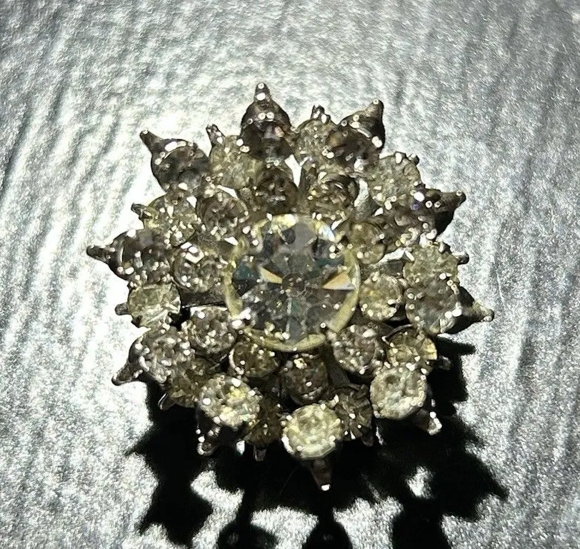 Vintage Holiday Sparkle Diamond Rhinestone Snowflake Atomic Starburst Brooch Pin Silver - $13 - From Hannah