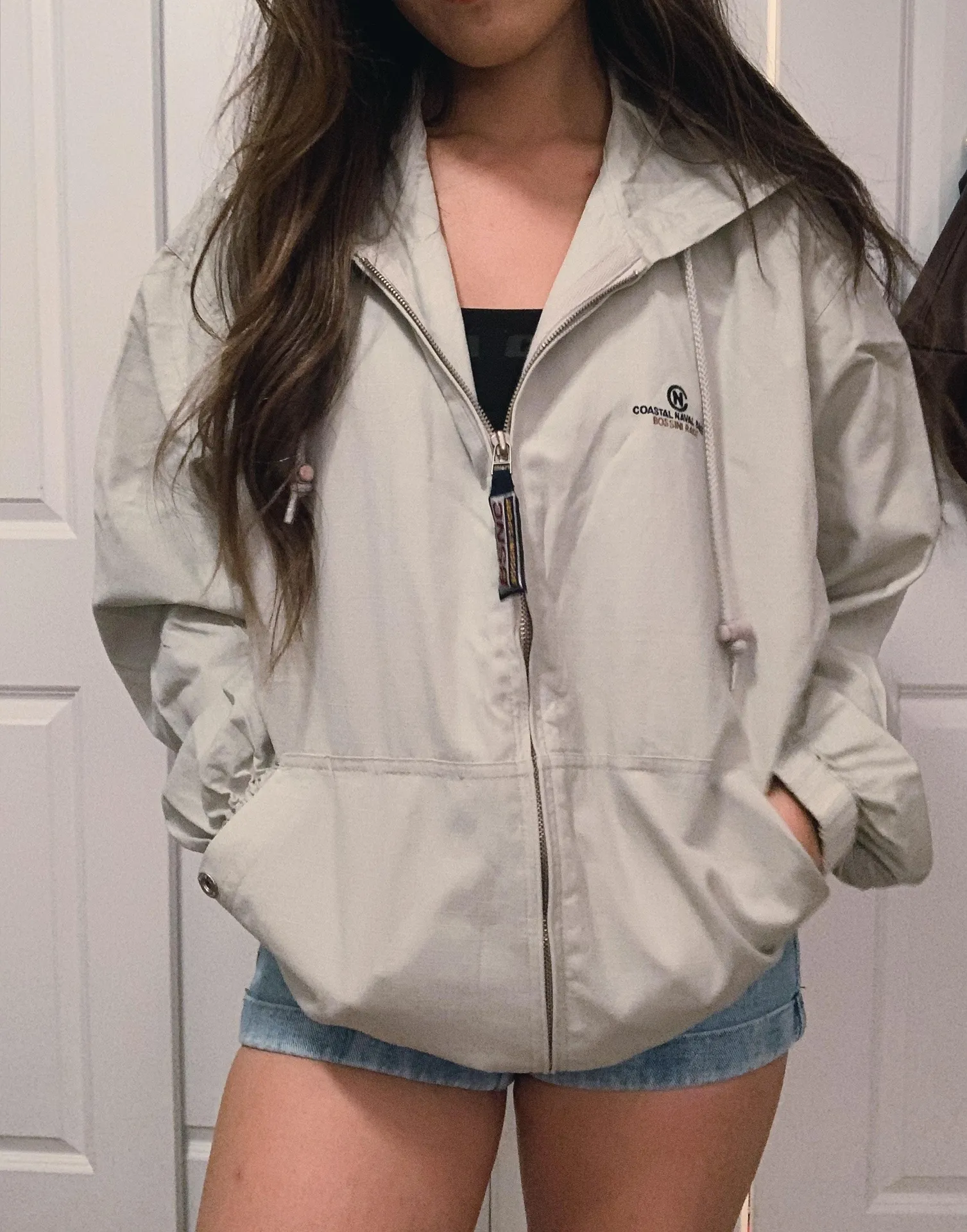 ✔️No stains; no signs of wear ✔️Vintage dad jacket with corner embroidery “Coastal Naval Base” ✔️This is a Men’s Medium; fits oversized ✔️Deep pockets and zipper detailing ✔️100% cotton lightweight material ✔️More of a light grey taupe color