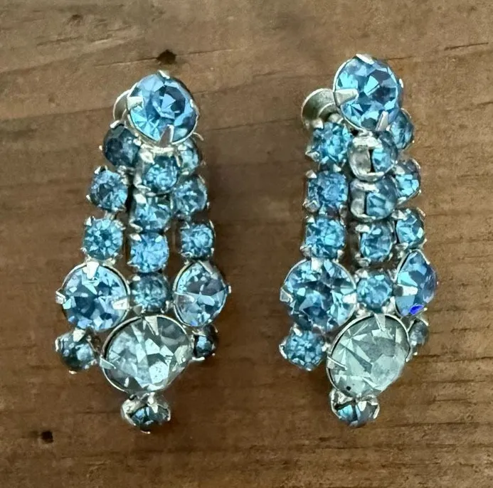 Vintage Ice Baby Blue Rhinestone Screw Back Earrings Silver Tone 1.5” - $36 - From Krista