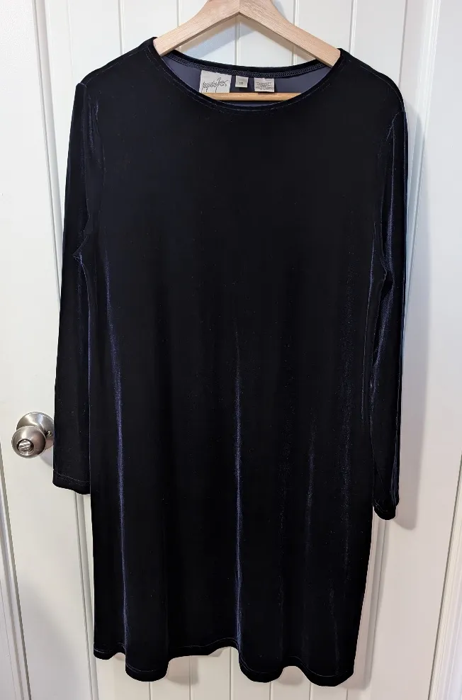 Vintage Jacqueline Ferrar Velvet Long Sleeve Midi Dress W10 Navy Blue Size 10 - $56 - From Courtney
