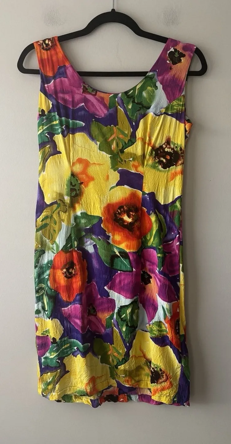 Vintage Jams World Yellow‎ Pink Poppy Floral Sleeveless Mini Shift Dress Medium - $57 - From Whitney