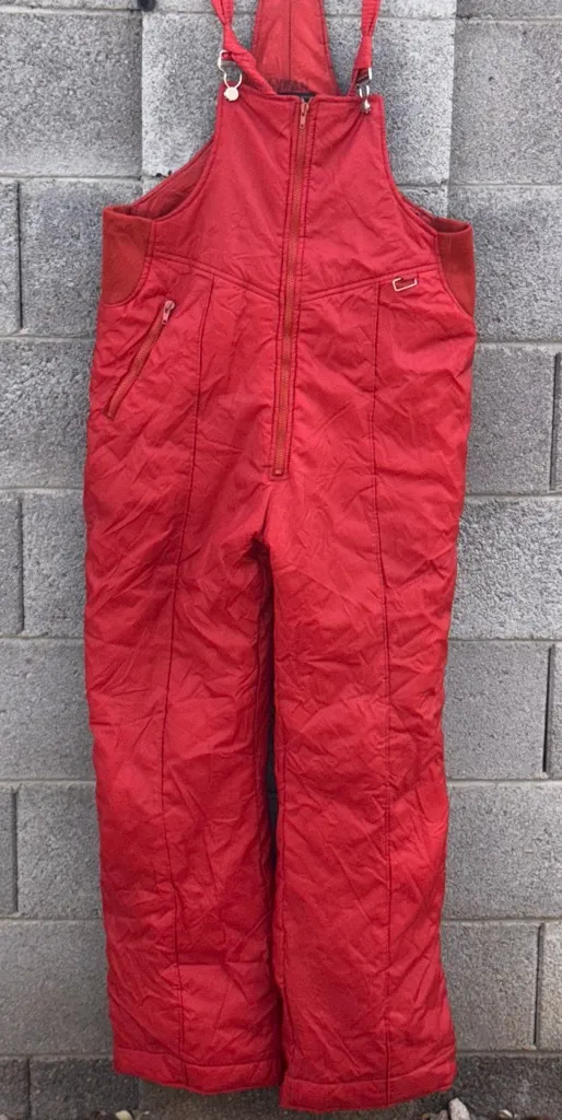 These are a pair of pre-owned JCPenney women's red ski and snow bib overalls, size XL Tall, made in... Show more