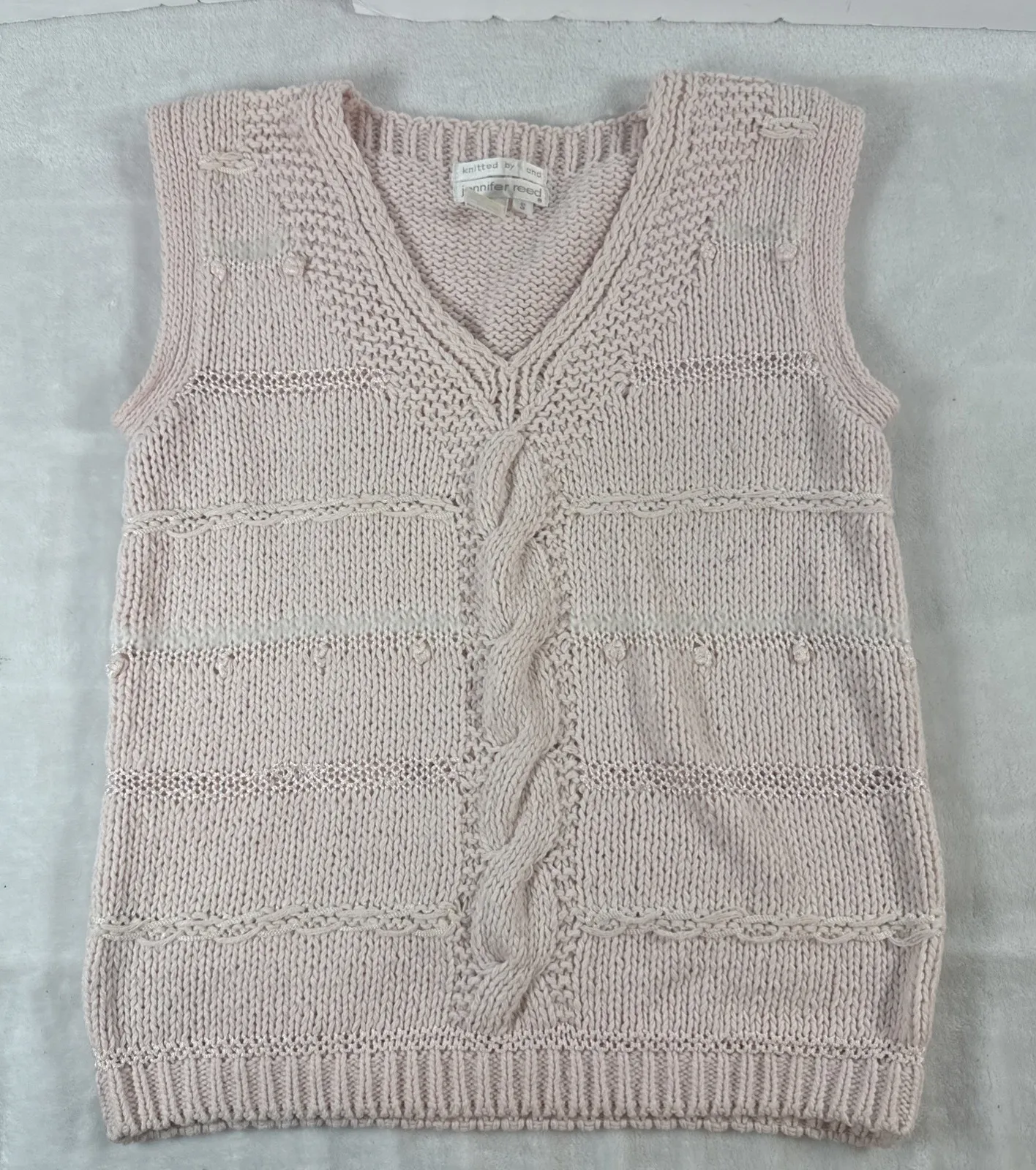 Vintage Jennifer Reed Hand Knit Cable Sweater Vest Pink Women's Size S V-neck - $30 - From Crystal
