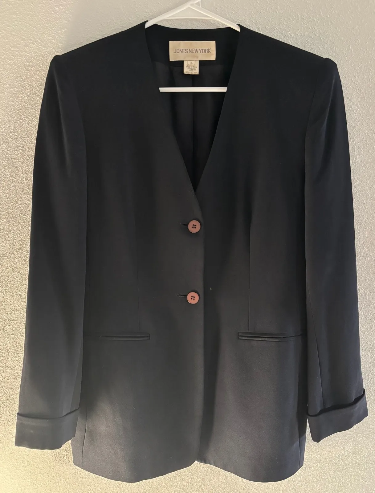 - Brand: Jones New York - Size: Women's 4 (oversized) - Color: Navy - Details: Silk, Double Button,... Show more