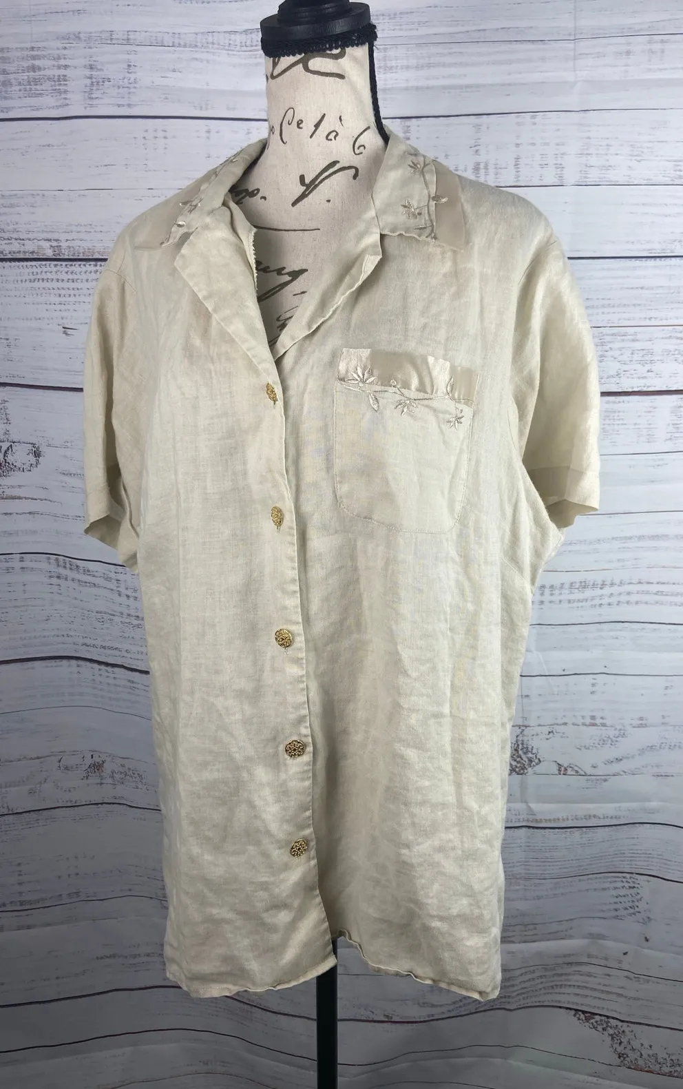 Elevate your wardrobe with this timeless vintage Jordan linen shirt. Perfect for a relaxed yet sophi... Show more