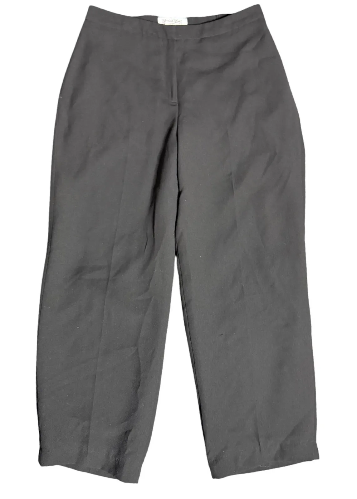 Classic black straight leg dress pants. These versatile trousers offer a clean, polished silhouette with a mid-rise waist and a comfortable straight leg cut. Designed for effortless style and ease of wear, they are perfect for a professional work environment or a sophisticated evening out. Style: Dress Pants Department: Women Leg Style: Straight Type: Pants Features: Elastic Waist, Pockets Closure: Zip, Button, Hook & Eye Pattern: Solid Occasion: Casual, Workwear, Business Season: Fall, Winter, Summer, Spring Garment Care: Machine Washable Unit Type: Unit Keywords: black pants, dress trousers, career wear, office attire, business casual, straight leg, classic, work pants, tailored, smart casual, evening wear, womens trousers