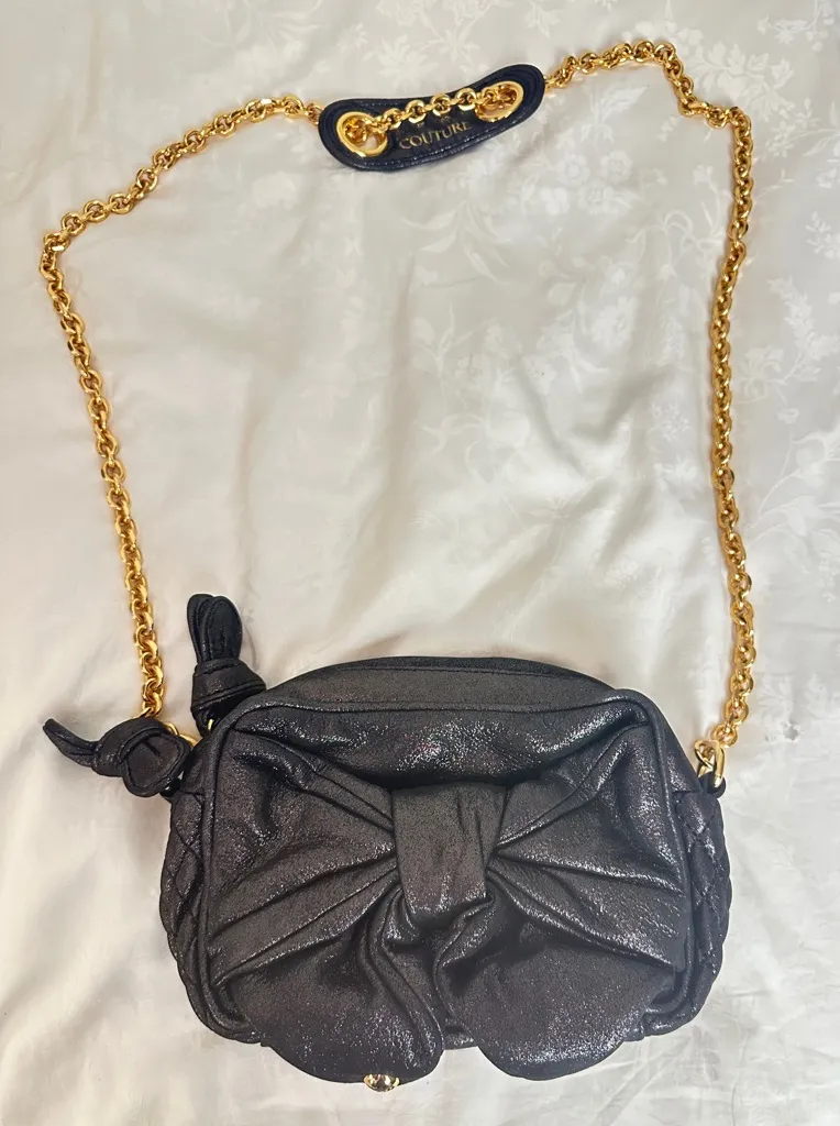 Elevate your style with this chic black bag featuring a luxurious gold chain. Perfect for any occasi... Show more