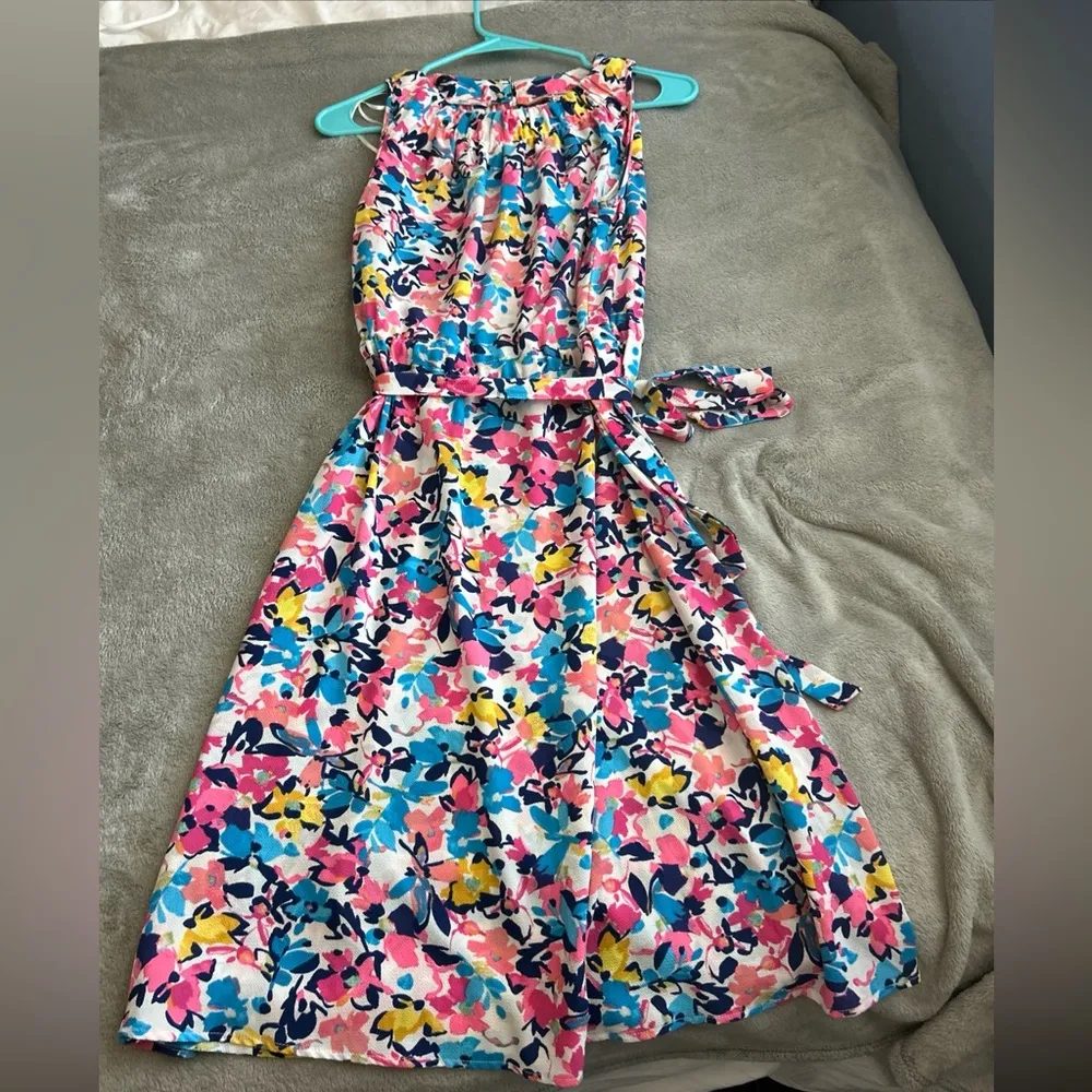 Charming floral dress with a vibrant color palette. Ideal for casual outings. Features a playful des... Show more