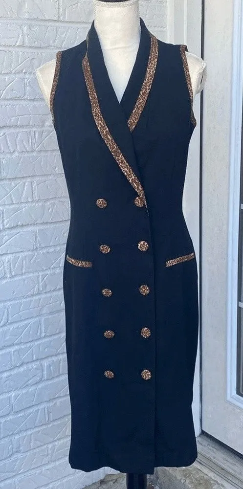 VINTAGE Julian Taylor Black Cheetah Print Midi Dress 90'S Office Baddie Size 8 - $24 - From Heather