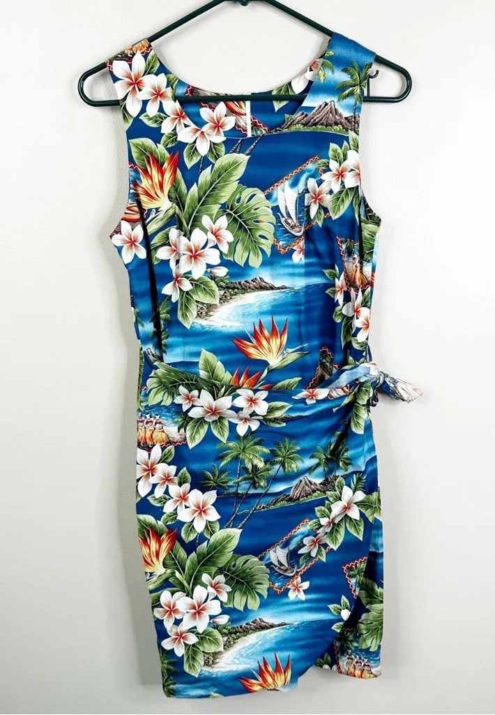 Great pre-owned condition, no holes or stains 100% cotton Made in Hawaii Back zipper closure Faux wrap Measurements are approximate- Chest- 15" Length- 36" summer, vacation, beach, resort wear, island, travel, Hawaii