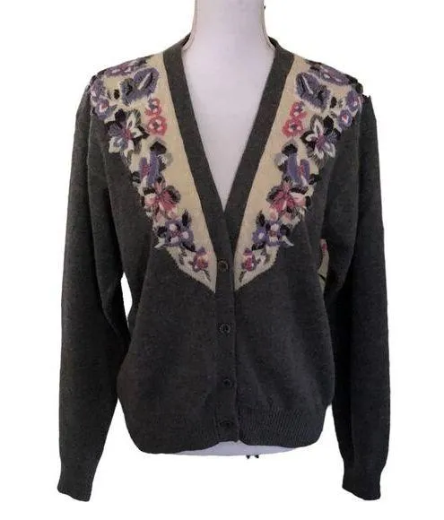Vintage Koret Size Large Floral Stitched Cardigan Sweater Lambs Wool Angora Gray - $41 - From Stacie