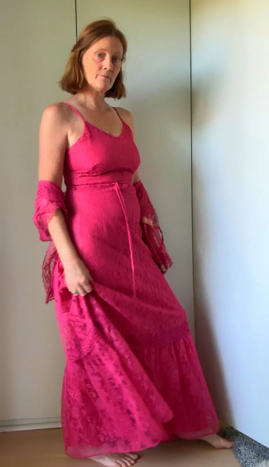Vintage Lace Maxi Dress with Jacket Mauve Full Length Sundress Prom Size M Details: Label Kim Hart... Show more