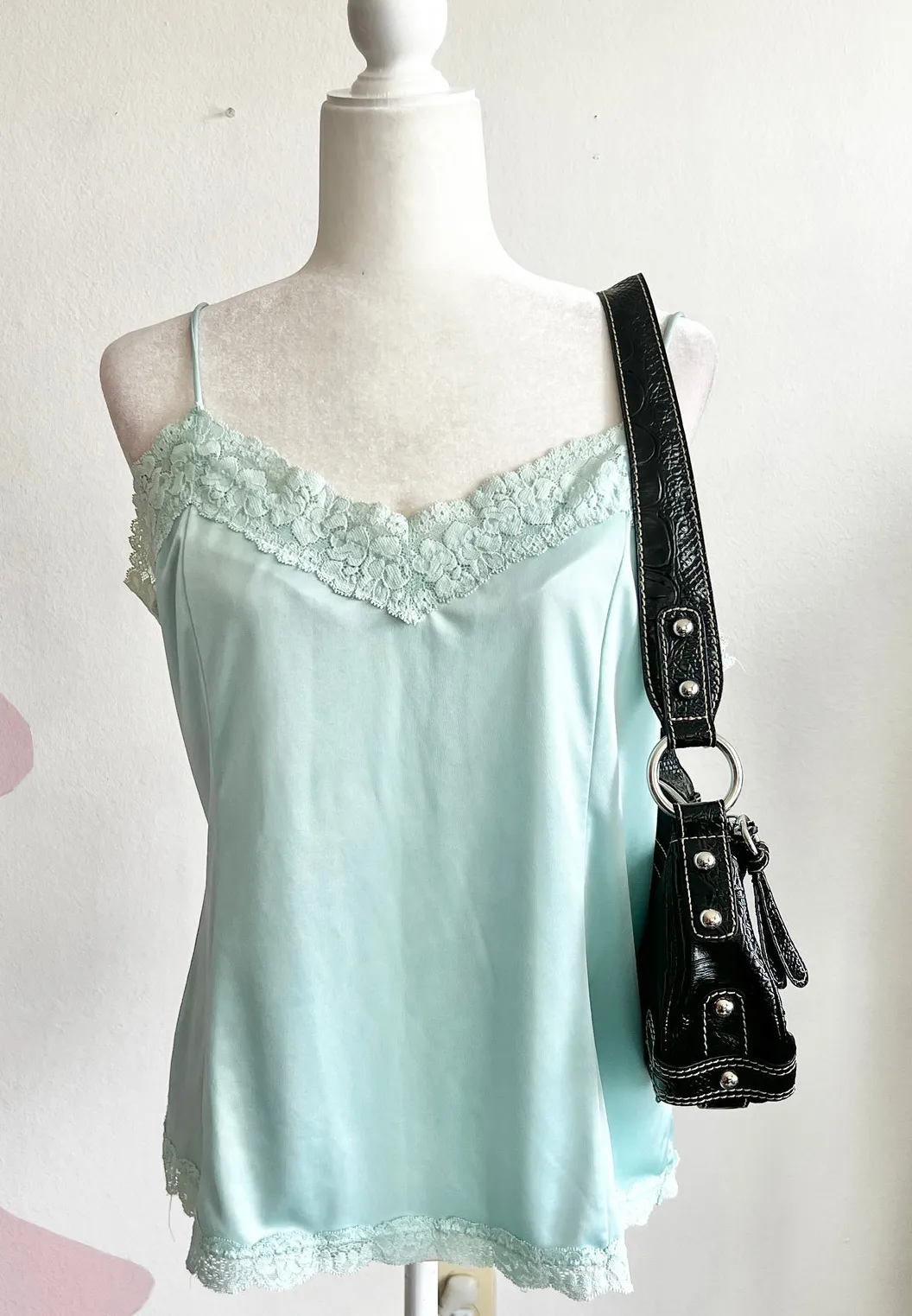 Vintage Lace‎ Trim Tank Top, Coquette Y2K Fairycore 2000s Pastel Soft Girl Large Blue - $12 - From Kenia